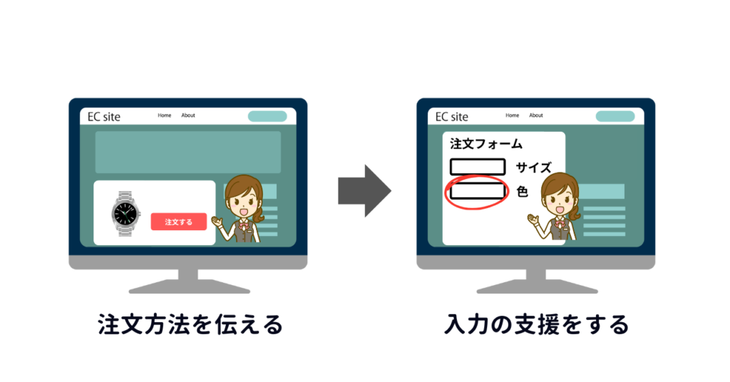 届け先や製品番号などの入力ミスを防ぎながら、注文完了までお客様をしっかりとフォローできます。